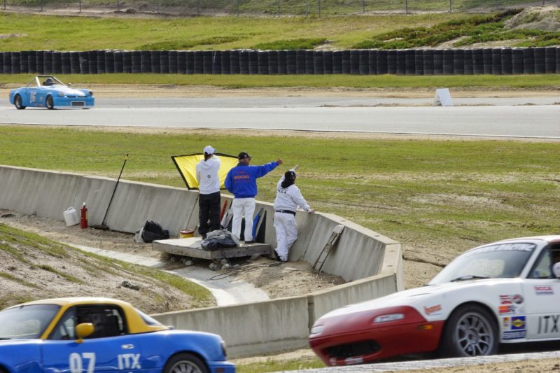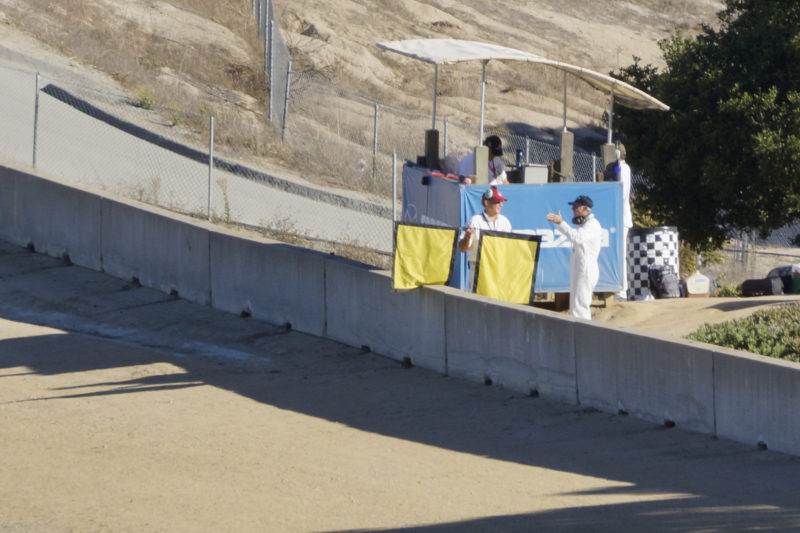 More flags, car off the track.. In the weeds… double yellows.. Course Marshall fixes the delineators. (Sorry drivers). All good, and you have to be quick….